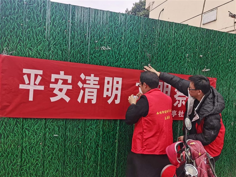 活動中,志愿者與社區(qū)工作人員向居民發(fā)放倡議書,呼吁社區(qū)居民進一步樹立“安全文明、綠色環(huán)!鼻迕骷漓胄嘛L(fēng)尚,建議用鮮花祭祀、絲帶寄哀思、網(wǎng)絡(luò)祭掃等文明簡約、綠色環(huán)保的祭掃方式來寄托哀思,營造文明有序的祭祀環(huán)境。