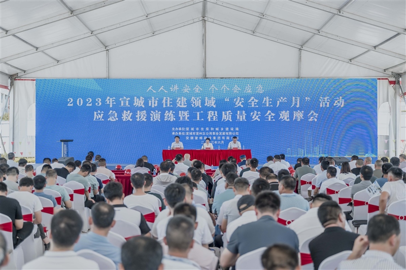 2023年6月28日,宣城市住建領(lǐng)域“安全生產(chǎn)月”活動(dòng)應(yīng)急救援演練暨工程質(zhì)量安全觀摩會(huì)在我司高級(jí)技工學(xué)校建設(shè)項(xiàng)目成功舉行。市住建局主要負(fù)責(zé)人親臨指導(dǎo),全市各縣(市、區(qū))住建局、市質(zhì)監(jiān)站、宣城經(jīng)開區(qū)管委會(huì)、宣城現(xiàn)代服務(wù)業(yè)產(chǎn)業(yè)園區(qū)管委會(huì)市住建局下屬相關(guān)單位及全市各縣 (市、區(qū))部分建設(shè)、施工、監(jiān)理企業(yè)主要負(fù)責(zé)人、項(xiàng)目負(fù)責(zé)人共 300 余人參加觀摩活動(dòng)。
