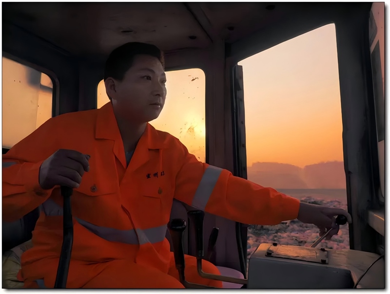 徐開(kāi)鋒臨危受命,在填埋場(chǎng)當(dāng)推土機(jī)駕駛員。每天的工作就是把400多噸的垃圾推平壓實(shí)。每到夏、秋季節(jié),臭氣熏天的垃圾引來(lái)更多的蒼蠅“光顧”,用徐開(kāi)鋒同事的話說(shuō),“遠(yuǎn)看徐開(kāi)鋒就好像穿了一副‘將軍鎧甲',蒼蠅扒在他的臉上、手上、背上……”彼時(shí)的徐開(kāi)鋒已經(jīng)是一名7歲女孩的父親,但為了應(yīng)對(duì)繁重的工作,他每天5點(diǎn)鐘就騎著摩托車出了門,等到晚上回家時(shí),女兒多半已經(jīng)睡著了!邦I(lǐng)導(dǎo)把我安排到這個(gè)崗位,我就要崗位上做出個(gè)樣!”,正是胸懷這份“執(zhí)拗”,他在填埋場(chǎng)推土機(jī)駕駛員崗位上堅(jiān)持了11年。